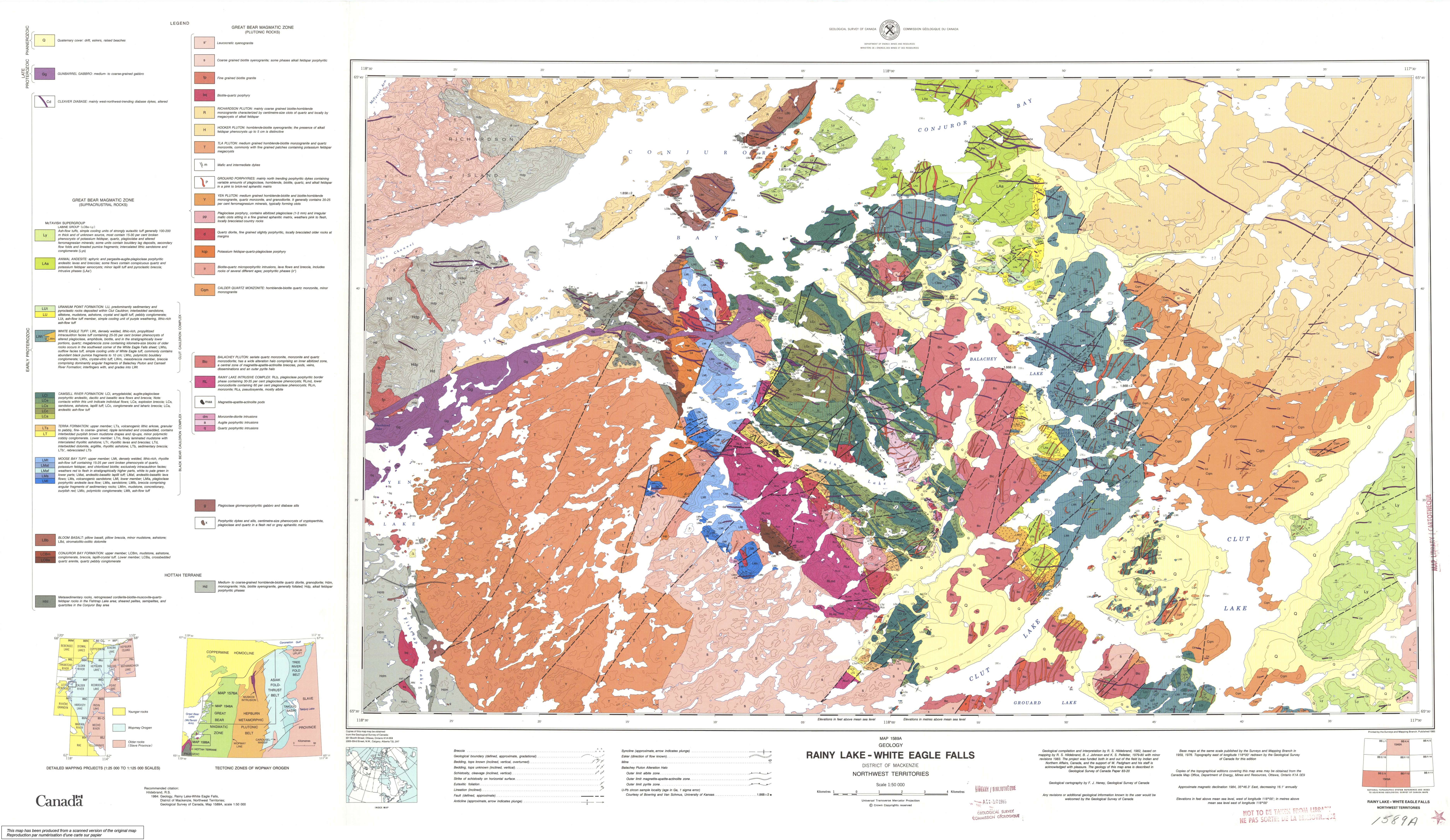 Hildebrand, R.S., 1985, Rainy Lake-White Eagle Falls area, District of Mackenzie: Geological Survey of Canada Map 1546A, scale 1:50,000.